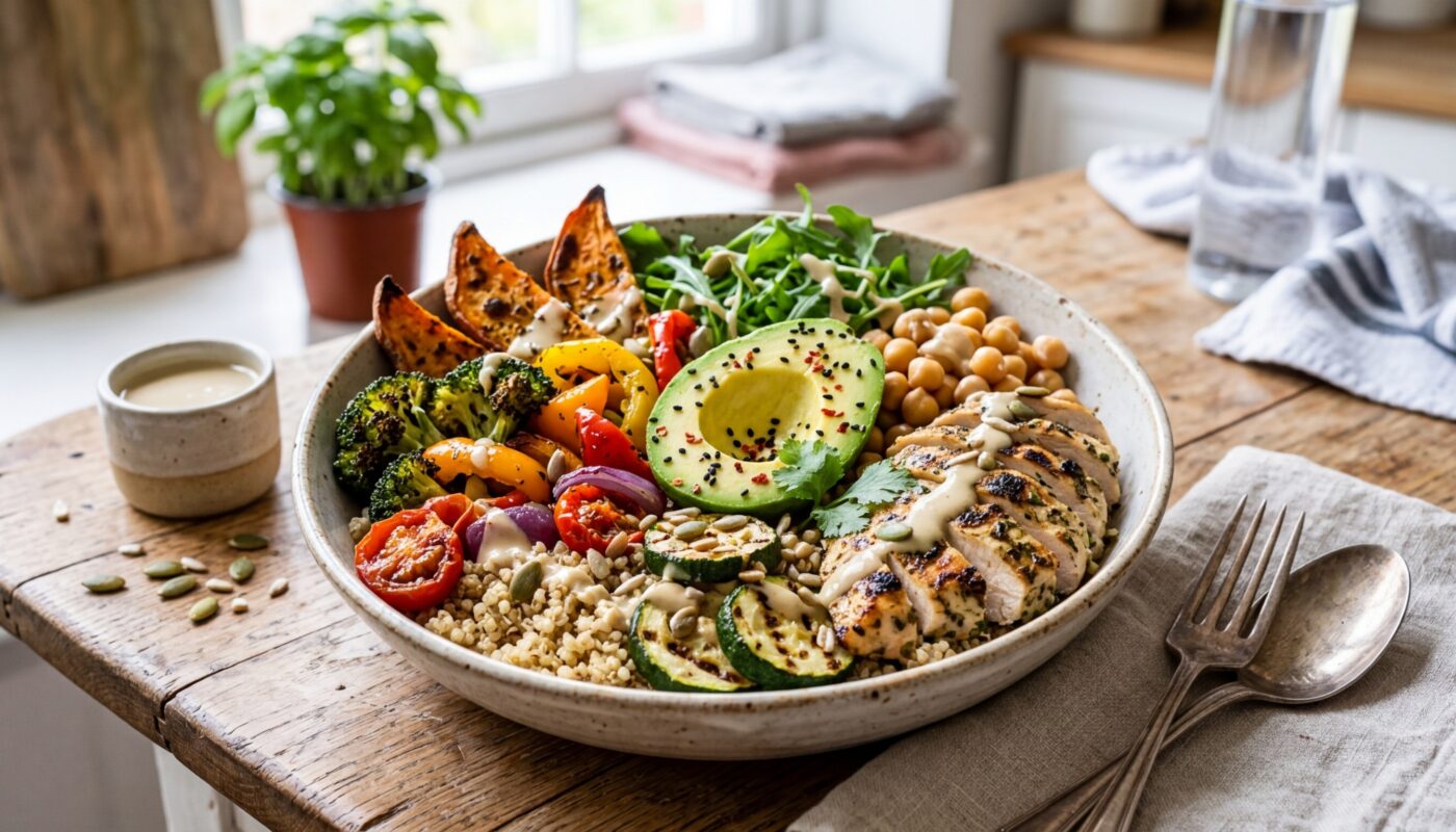 Après des années à tester différents repas post-training, j'ai enfin trouvé LA recette qui combine tout ce dont mon corps a besoin : protéines complètes, glucides à index glycémique modéré et vitamines en abondance. Ce Buddha bowl au quinoa germé et légumes grillés est devenu mon allié incontournable après chaque séance intensive. Non seulement il favorise ma récupération musculaire, mais il est aussi délicieux et coloré. Le quinoa germé apporte 14g de protéines pour 100g, les légumes grillés offrent leurs antioxydants, et l'ensemble forme un plat complet qui rassasie sans alourdir. Je vous partage aujourd'hui cette recette qui transformera vos repas post-entraînement.